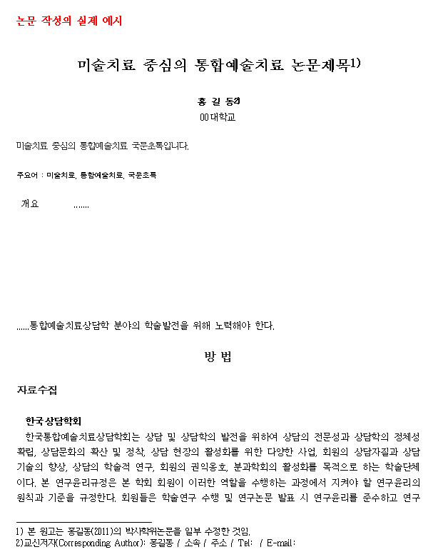 2. °ÔÀçÈñ¸ÁÀÚ´Â Çѱ¹ÅëÇÕ¿¹¼úÄ¡·á»ó´ãÇÐȸ ȨÆäÀÌÁö(www.kiatia.co.kr)¿¡¼ ´Ù¿î¹Þ¾Æ ÀÛ¼ºÇÑ ³í¹®°ÔÀç½Åû¼¿Í